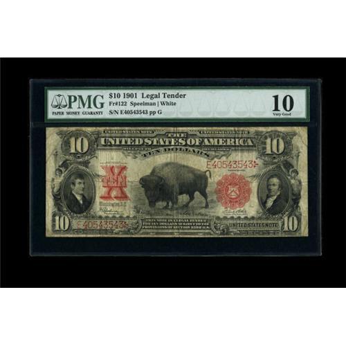 <B>Fr. 122 $10 1901 Legal Tender PMG Very Good 10.</B></I> Corner tears are noticed on this Bison.<BR><BR><b>Shipping:</b> Coins & Currency (<a target="_blank" href="http://www.heritageauctions.com/common/shipping.php">view shipping information</a>)