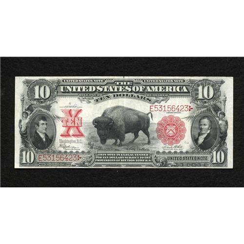 <B>Fr. 122 $10 1901 Legal Tender Very Fine.</B></I> This pleasing, bright white Bison faces up nicely. Despite three heavy folds the paper originality is unmistaken.