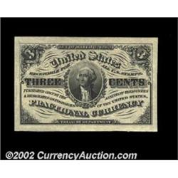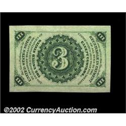 Fr. 1226 3ó Third Issue Superb Gem New. Even, jumbo margins all the way around, perfect centering of both sides and good paper surfaces all combine to make this as nice a 3ó Fractional as any that exists. It was clearly cut from a sheet for collector purposes, as all the notes around it had to be sacrificed to create these margins. Only four notes like this can be cut from a sheet, and it must have perfect face-to-back registration. Important notice: We expect to be auctioning lots at the rate of 200-250 per hour. Sometimes eBay Premier live bid software cannot keep up with that pace, so we strongly recommend that you place a realistic proxy bid now as insurance to avoid disappointment. Also please note that all Heritage/CAA lots purchased through eBay Premier carry a 20% Buyer's Premium. Please make sure you read the Terms and Conditions.