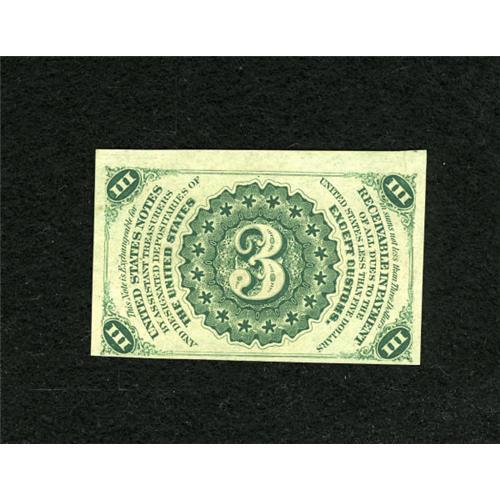 <B>Fr. 1226 3c Third Issue Choice New.</B></I> The margins are close to being even except the top is quite large making the back skewed. <BR><BR><b>Shipping:</b> Coins & Currency (<a target="_blank" href="http://www.heritageauctions.com/common/shipping.php">view shipping information</a>)