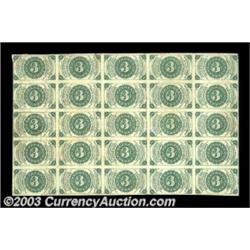 Fr. 1226 3c Third Issue Uncut Sheet of 25 Extremely Fine. Few 3c sheets remain, as so many have been cut to satisfy the demand for individual notes. This sheet has a few light folds and a little soil on a half-dozen notes as well as a nick in one edge that affects only a single note. The sheet has excellent eye appeal.  Important notice: Heritage usually auctions material at the rate of 200-250 lots per hour. On some occasions eBay Live bid software or the Internet may not be able to keep up with the pace of the auction. We recommend placing a realistic absentee bid now as insurance to avoid disappointment. Occasionally the auctioneer may eliminate or reject an eBay Live bid, and the auctioneer may also reopen a lot after the close of the eBay live bidding (usually because we missed an audience bid), and may reject your bid even if it shows you as the winning bidder. By bidding via eBay Live, you agree that Heritage may award the lot to another bidder at its sole discretion under the circumstances described above or any other reasonable circumstances. Also please note that all Heritage lots purchased through eBay Live carry a 20% Buyer's Premium. Please make sure you read the Terms and Conditions before you bid.