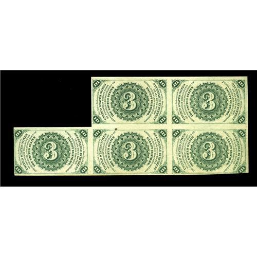 Fr. 1226 Milton 3R3.1q 3¢ Third Issue Block of Five Cou Fr. 1226 Milton 3R3.1q 3¢ Third Issue Block