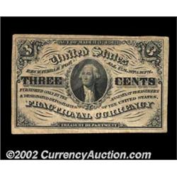 Fr.1227 3ó Third Issue About New. This is a "no pearls" variety, which we have no recollection of seeing before on a Dark Curtain note. There is indeed no sign of the pearls beneath Washington's portrait on an otherwise boldly printed note, but we suspect an inking error rather than a meaningful variety. Important notice: We expect to be auctioning lots at the rate of 200-250 per hour. Sometimes eBay Premier live bid software cannot keep up with that pace, so we strongly recommend that you place a realistic proxy bid now as insurance to avoid disappointment. Also please note that all Heritage/CAA lots purchased through eBay Premier carry a 20% Buyer's Premium. Please make sure you read the Terms and Conditions.