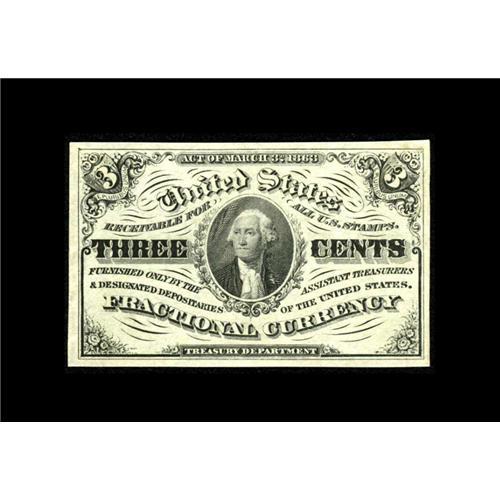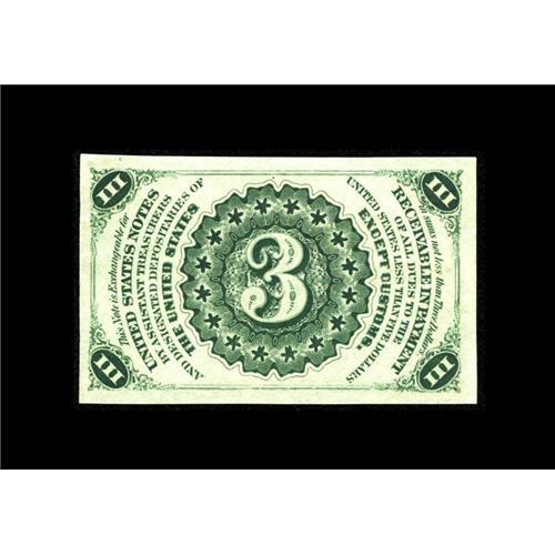 <B>Fr. 1227 3c Third Issue Very Choice New.</B></I> This is a near-Gem example of the scarcer Dark Curtain variety. The margins are fairly broad and quite even all around.<BR><BR><b>Shipping:</b> Coin/Currency (<a target="_blank" href="http://www.heritageauctions.com/common/shipping.php">view shipping information</a>)