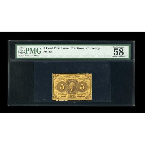 Fr. 1228 5c First Issue PMG Choice About Unc 58. Fr. 1228 5c First Issue PMG Choice About Unc 58.