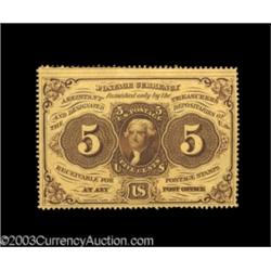 <TABLE cellSpacing=0 cellPadding=0 width="100%" bgColor=#000000 border=0><TBODY> <TR><TD width="100%"><TABLE cellSpacing=1 cellPadding=3 width="100%" border=0><TBODY><TR><TD width="100%" bgColor=#79735c><FONT face=arial color=#ffffff size=3><B>Description</B> </FONT></TD></TR><TR><TD width="100%" bgColor=#ffffff><FONT face=arial size=2><B>Fr. 1228 5c First Issue Superb Gem New.</B></I> Huge margins all the way around, with deep perforations on all four sides. Simply one of the nicest perforated Fractionals that we have had the pleasure of handling. (400-up ) </FONT></TD></TR></TBODY></TABLE></TD></TR></TBODY></TABLE><BR><TABLE cellSpacing=0 cellPadding=0 width="100%" bgColor=#000000 border=0><TBODY><TR> Important notice: Heritage usually auctions material at the rate of 200-250 lots per hour. On some occasions eBay Live bid software or the Internet may not be able to keep up with the pace of the auction. We recommend placing a realistic absentee bid now as insurance to avoid disappointment. Occasionally the auctioneer may eliminate or reject an eBay Live bid, and the auctioneer may also reopen a lot after the close of the eBay live bidding (usually because we missed an audience bid), and may reject your bid even if it shows you as the winning bidder. By bidding via eBay Live, you agree that Heritage may award the lot to another bidder at its sole discretion under the circumstances described above or any other reasonable circumstances. Also please note that all Heritage lots purchased through eBay Live carry a 20% Buyer's Premium. Please make sure you read the Terms and Conditions before you bid.</TR></TBODY></TABLE>