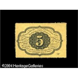 Fr. 1228 5c First Issue Very Choice New. Beautifull <B>Fr. 1228 5c First Issue Very Choice New.</B></I> Beautifully perforated all around and a full Gem but for the face centering being shifted slightly to the left. <BR><BR><B>Important notice:</B> Heritage usually auctions material at the rate of 200-250 lots per hour. On some occasions eBay Live bid software or the Internet may not be able to keep up with the pace of the auction. We recommend placing a realistic absentee bid now as insurance to avoid disappointment. Occasionally the auctioneer may eliminate or reject an eBay Live bid, and the auctioneer may also reopen a lot after the close of the eBay live bidding (usually because we missed an audience bid), and may reject your bid even if it shows you as the winning bidder. By bidding via eBay Live, you agree that Heritage may award the lot to another bidder at its sole discretion under the circumstances described above or any other reasonable circumstances. Since eBay bids are not shown to us until we open the lot on the floor, we treat those bids just like floor bids. In most cases the floor responds before the eBay bid is presented to us, due to Internet lag time, so for consistency we have made it a policy that floor bids are always considered first over tie eBay live bids. Also please note that all Heritage lots purchased through eBay Live carry a 20% Buyer's Premium. Please make sure you read the Terms and Conditions before you bid. This lot is being auctioned in conjunction with a live floor auction by Heritage Galleries & Auctioneers. All final auction and invoice information will be supplied by Heritage Galleries & Auctioneers, and all other information should be considered preliminary. Lot:15334