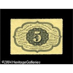 Fr. 1229 5c First Issue Gem New. A problem-free, beauti <B>Fr. 1229 5c First Issue Gem New.</B></I> A problem-free, beautifully perforated example of this scarce no monogram note. Virtually never seen this nice. <BR><BR><B>Important notice:</B> Heritage usually auctions material at the rate of 200-250 lots per hour. On some occasions eBay Live bid software or the Internet may not be able to keep up with the pace of the auction. We recommend placing a realistic absentee bid now as insurance to avoid disappointment. Occasionally the auctioneer may eliminate or reject an eBay Live bid, and the auctioneer may also reopen a lot after the close of the eBay live bidding (usually because we missed an audience bid), and may reject your bid even if it shows you as the winning bidder. By bidding via eBay Live, you agree that Heritage may award the lot to another bidder at its sole discretion under the circumstances described above or any other reasonable circumstances. Since eBay bids are not shown to us until we open the lot on the floor, we treat those bids just like floor bids. In most cases the floor responds before the eBay bid is presented to us, due to Internet lag time, so for consistency we have made it a policy that floor bids are always considered first over tie eBay live bids. Also please note that all Heritage lots purchased through eBay Live carry a 20% Buyer's Premium. Please make sure you read the Terms and Conditions before you bid. This lot is being auctioned in conjunction with a live floor auction by Heritage Galleries & Auctioneers. All final auction and invoice information will be supplied by Heritage Galleries & Auctioneers, and all other information should be considered preliminary. Lot:15336
