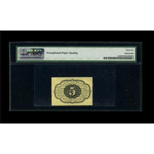 <B>Fr. 1229 5c First Issue PMG Gem Uncirculated 65 EPQ.</B></I> A problem-free, beautifully perforated example of this scarce no monogram note. Virtually never seen this nice.<BR><BR><b>Shipping:</b> Coins & Currency (<a target="_blank" href="http://www.heritageauctions.com/common/shipping.php">view shipping information</a>)