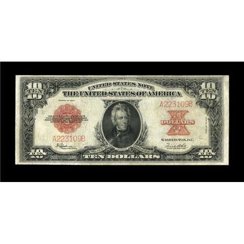 <B>Fr. 123 $10 1923 Legal Tender Fine-Very Fine.</B></I> The sharpness in the overprint is a touch weak.<BR><I>From The Collection of Greg Southward</B></I><BR><BR><b>Shipping:</b> Coins & Currency (<a target="_blank" href="http://www.heritageauctions.com/common/shipping.php">view shipping information</a>)