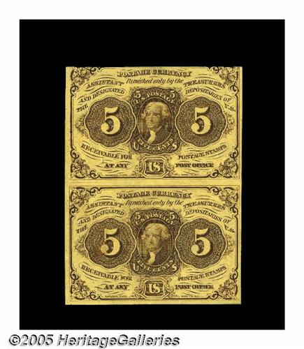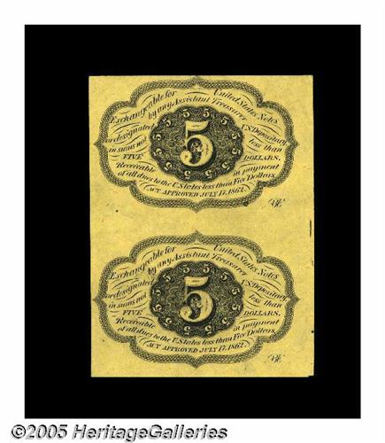 <B>Fr. 1230 5¢ First Issue Pair Choice New.</B></I> A nice First Issue pair unfolded between the notes.