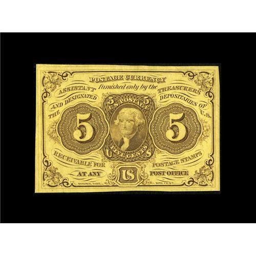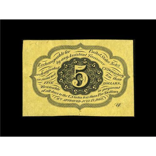 <B>Fr. 1230 5¢ First Issue Superb Gem New.</B></I> Just about as nice as these come, with fresh, original paper surfaces, broad margins all around, bright colors and tons of eye appeal. A note that would likely find its way into a 66 or 67 holder.<BR><I>From The Jacob and Heather Dedman Collection</B></I><BR><BR><b>Shipping:</b> Coins & Currency (<a target="_blank" href="http://www.heritageauctions.com/common/shipping.php">view shipping information</a>)