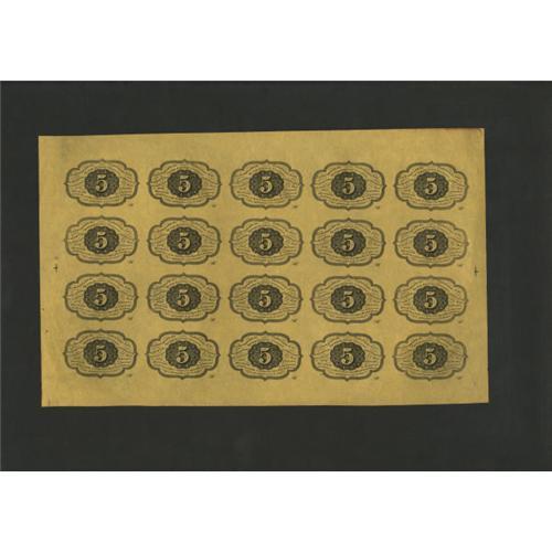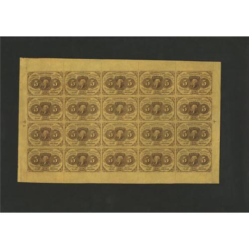 <B>Fr. 1230 5¢ First Issue Uncut Sheet of Twenty Gem New.</B></I> This is an attractive uncut sheet with wide selvage. Plate numbers are 48 face and 15 back. Not a terribly rare sheet, but we have handled very few as nice as this one.<BR><BR><b>Shipping:</b> Coin/Currency (<a target="_blank" href="http://www.heritageauctions.com/common/shipping.php">view shipping information</a>)