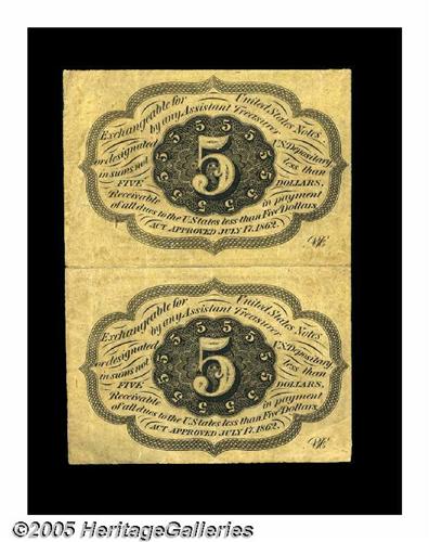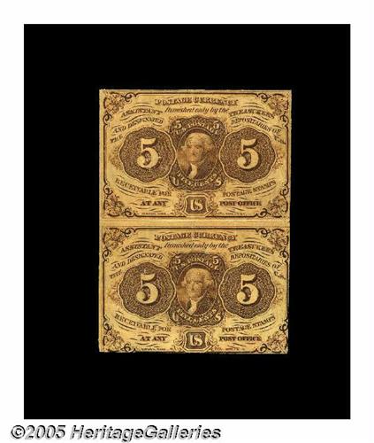 <B>Fr. 1230 5¢ First Issue Vertical Pair Very Fine.</B></I> A First Issue pair with nice color.