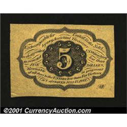 Fr. 1230 5¢ First Issue Very Choice New.<p>A really nice looking, strictly original example of this popular type. It was one piece of a four-piece group, Lot 1742, in Bowers' November 1984 sale. Important notice: We expect to be auctioning lots at the rate of 200-250 per hour. Sometimes eBay Premier live bid software cannot keep up with that pace, so we strongly recommend that you place a realistic proxy bid now as insurance to avoid disappointment. Also please note that all Heritage/CAA lots purchased through eBay Premier carry a 20% Buyer's Premium.