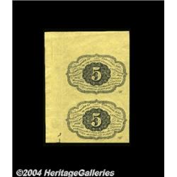 Fr. 1230 5c First Issue Vertical Pair Gem New. A crackling fresh, perfectly bright, beautiful pair. The notes have great originality and the fully wide plate selvage at the top and right is present. There is some minor handling in the wide margin area, but the notes themselves are Gems. <BR><BR><B>Important notice:</B> Heritage usually auctions material at the rate of 200-250 lots per hour. On some occasions eBay Live bid software or the Internet may not be able to keep up with the pace of the auction. We recommend placing a realistic absentee bid now as insurance to avoid disappointment. Occasionally the auctioneer may eliminate or reject an eBay Live bid, and the auctioneer may also reopen a lot after the close of the eBay live bidding (usually because we missed an audience bid), and may reject your bid even if it shows you as the winning bidder. By bidding via eBay Live, you agree that Heritage may award the lot to another bidder at its sole discretion under the circumstances described above or any other reasonable circumstances. Since eBay bids are not shown to us until we open the lot on the floor, we treat those bids just like floor bids. In most cases the floor responds before the eBay bid is presented to us, due to Internet lag time, so for consistency we have made it a policy that floor bids are always considered first over tie eBay live bids. Also please note that all Heritage lots purchased through eBay Live carry a 20% Buyer's Premium. Please make sure you read the Terms and Conditions before you bid. <BR><BR><B>IMPORTANT ANNOUNCEMENT ABOUT RESERVES:</B> Heritage now divulges all reserves on its web site 7 days before every auction. If you want to know whether the reserve on this lot has been met, and if not, what the reserve amount is, please visit this lot page on the HeritageCoin.com web site, or email: bid@HeritageGalleries.com