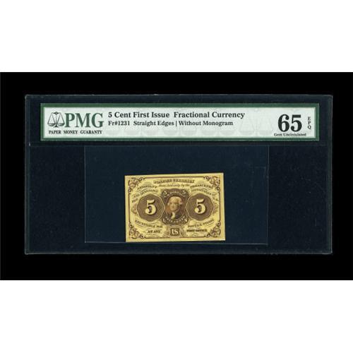 Fr. 1231 5c First Issue PMG Gem Uncirculated 65