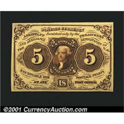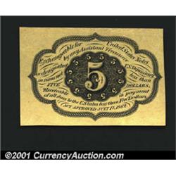 Fr. 1231 5c First Issue Very Choice New.<p>Extremely well printed and very bright. If the centering were just a touch better, this scarce, straight-edge no-monogram note would be a perfect Gem. Important notice: We expect to be auctioning lots at the rate of 200-250 per hour. Sometimes eBay Premier live bid software cannot keep up with that pace, so we strongly recommend that you place a realistic proxy bid now as insurance to avoid disappointment. Also please note that all Heritage/CAA lots purchased through eBay Premier carry a 20% Buyer's Premium.