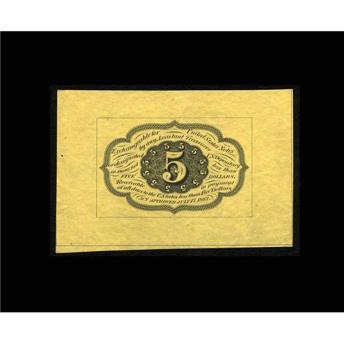 <B>Fr. 1231SP 5¢ First Issue Wide Margin Pair Superb Gem New.</B></I> An incredible pair, beautifully matched for size. The color on these pairs never quite matches, with the backs having been printed on a darker buff paper, and the faces on a more lemon yellow. Both the face and back have pristine original surfaces, and both have two full cutting guides.