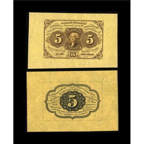 <B>Fr. 1231SP 5c First Issue Wide Margin Pair Superb Gem New.</B></I> The face is not quite as large as the exceptionally wide back, but both are gorgeous, fully original pieces. This pair can be traced back as Lot 1303 of the 1973 auction of the Matt Rothert Collection.<BR><BR><b>Shipping:</b> Coin/Currency (<a target="_blank" href="http://www.heritageauctions.com/common/shipping.php">view shipping information</a>)