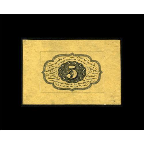 <B>Fr. 1231SP 5c Wide Margin Reverse First Issue Choice New.</B></I> This specimen has gargantuan margins and its only flaw is the mounting residue on the back.