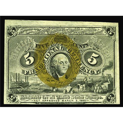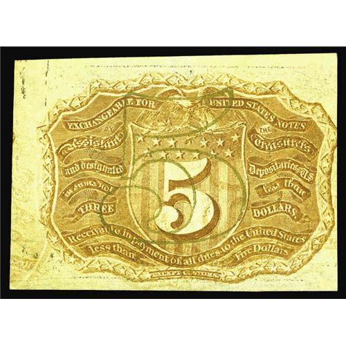 <B>Fr. 1232 5c Second Issue Offset Error Choice New.</B></I> The back lower left-hand corner shows a portion of an offset shield.