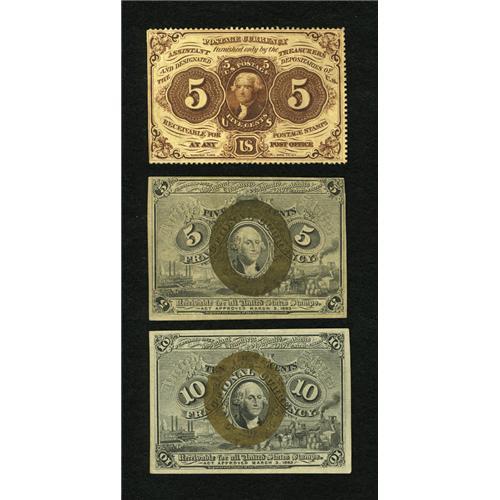 <B>Fractional Trio:</B></I> <B>Fr. 1229 5c First Issue Very Fine-Extremely Fine.<BR>Fr. 1232 5c Second Issue Extremely Fine-About New.</B></I><BR>and a<B> Fr. 1244 10c Second Issue Extremely Fine.</B></I><BR><BR><b>Shipping:</b> Coins & Currency (<a target="_blank" href="http://www.heritageauctions.com/common/shipping.php">view shipping information</a>)