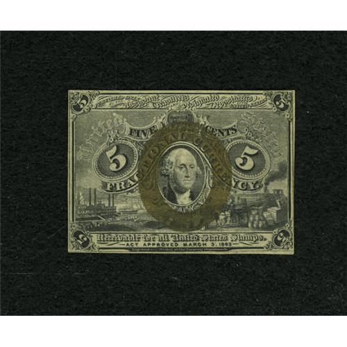 <B>Fr. 1232 5c Second Issue New.</B></I> The bronzing is bold on this pleasing example.<BR><BR><b>Shipping:</b> Coins & Currency (<a target="_blank" href="http://www.heritageauctions.com/common/shipping.php">view shipping information</a>)<BR><BR><B>Important notice:<