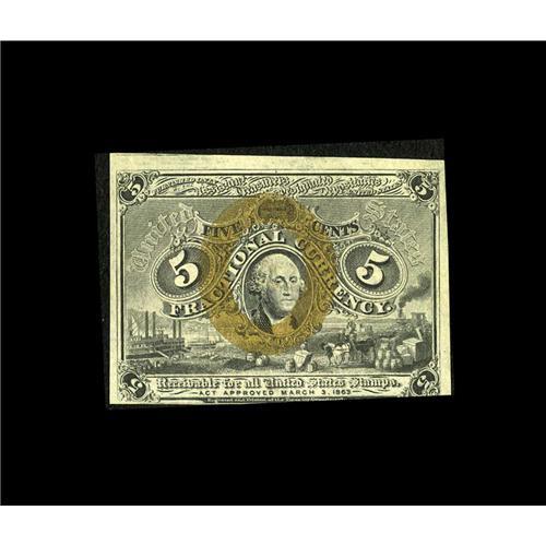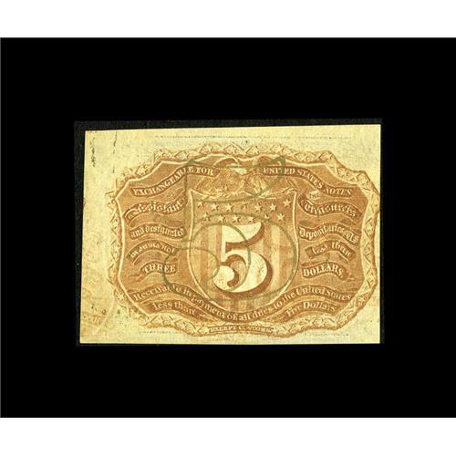 <B>Fr. 1232 5c Second Issue Offset Error Choice New.</B></I> The back lower left-hand corner shows a portion of an offset shield.<BR><BR><b>Shipping:</b> Coin/Currency (<a target="_blank" href="http://www.heritageauctions.com/common/shipping.php">view shipping information</a>)