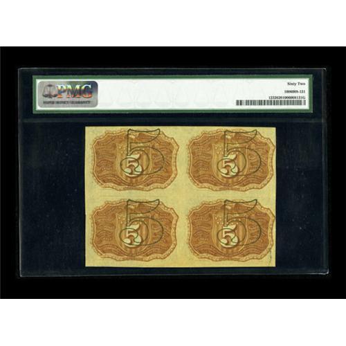 <B>Fr. 1232 5¢ Second Issue Block of Four PMG Uncirculated 62.</B></I> <BR> Lightly aged and close at the left, but it appears to be fully uncirculated as its holder states. <BR><BR><BR><b>Shipping:</b> Coins & Currency (<a target="_blank" href="http://www.heritageauctions.com/common/shipping.php">view shipping information</a>)