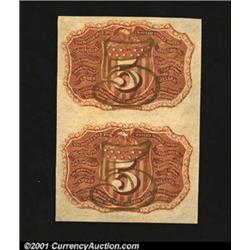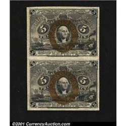 Fr. 1232 5c Second Issue Vertical Pair Superb Gem New.<p>An absolutely pristine pair with broad even margins, brilliant color, bright bronze and not a hint of a flaw. Important notice: We expect to be auctioning lots at the rate of 200-250 per hour. Sometimes eBay Premier live bid software cannot keep up with that pace, so we strongly recommend that you place a realistic proxy bid now as insurance to avoid disappointment. Also please note that all Heritage/CAA lots purchased through eBay Premier carry a 20% Buyer's Premium.