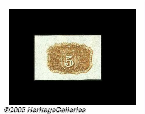 <B>Fr. 1232SP 5¢ Second Issue Wide Margin Pair About New.</B></I> Milton 2P5F.1a, 2P5R.1a. The face has two corner folds and a grouping of pinholes; the back grades Gem.