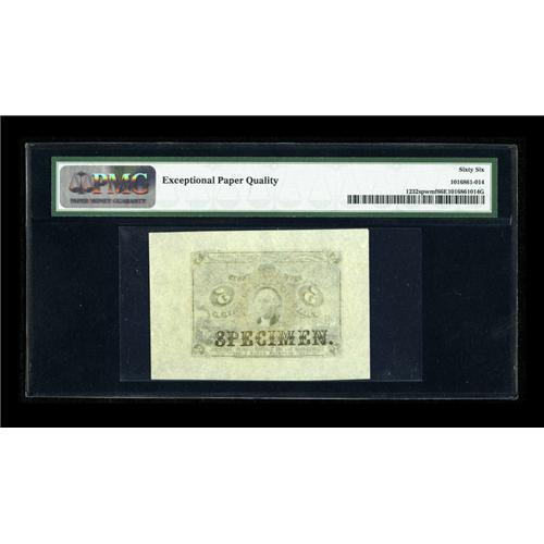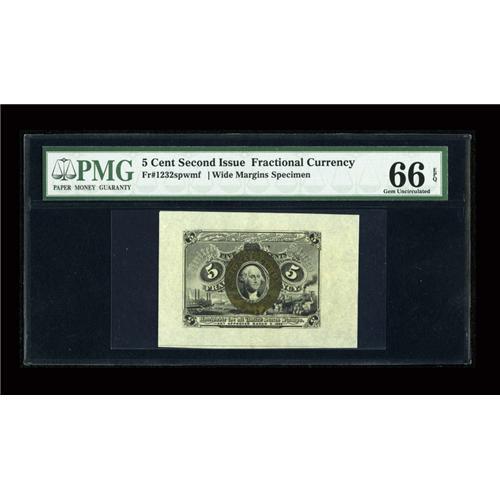 <B>Fr. 1232SP 5¢ Second Issue Wide Margin Pair PMG Gem Uncirculated 66 EPQ/64.</B></I> The face has been graded 66 EPQ. Both halves are fully wide, with strong eye-appeal.<BR><BR><b>Shipping:</b> Coins & Currency (<a target="_blank" href="http://www.heritageauctions.com/common/shipping.php">view shipping information</a>)