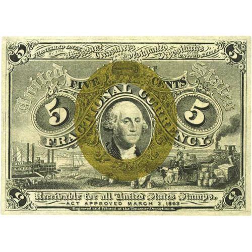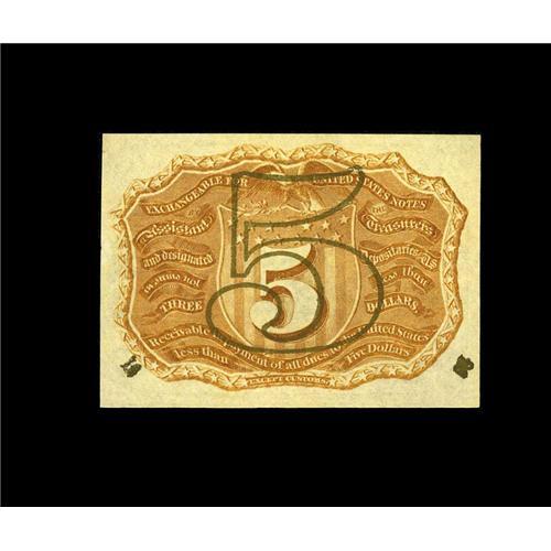 <B>Fr. 1233 5c Second Issue Gem New.</B></I> A lovely gem example of this slightly scarcer number which has bountiful margins, bright bronzing and strong ink color.