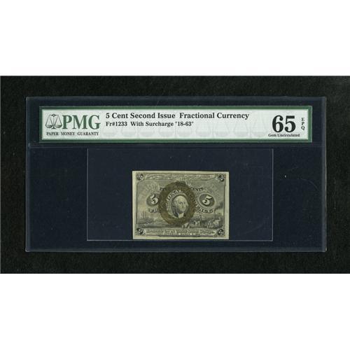 Fr. 1233 5c Second Issue PMG Gem Uncirculated 65