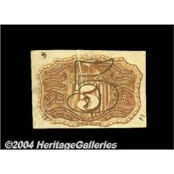 Fr. 1234 5c Second Issue Choice New. A narrow but plainly visible gutter fold bisects both sides of the note from top to bottom. A very unusual Error for Second Issue notes. <BR><BR><B>Important notice:</B> Heritage usually auctions material at the rate of 200-250 lots per hour. On some occasions eBay Live bid software or the Internet may not be able to keep up with the pace of the auction. We recommend placing a realistic absentee bid now as insurance to avoid disappointment. Occasionally the auctioneer may eliminate or reject an eBay Live bid, and the auctioneer may also reopen a lot after the close of the eBay live bidding (usually because we missed an audience bid), and may reject your bid even if it shows you as the winning bidder. By bidding via eBay Live, you agree that Heritage may award the lot to another bidder at its sole discretion under the circumstances described above or any other reasonable circumstances. Since eBay bids are not shown to us until we open the lot on the floor, we treat those bids just like floor bids. In most cases the floor responds before the eBay bid is presented to us, due to Internet lag time, so for consistency we have made it a policy that floor bids are always considered first over tie eBay live bids. Also please note that all Heritage lots purchased through eBay Live carry a 20% Buyer's Premium. Please make sure you read the Terms and Conditions before you bid. <BR><BR><B>IMPORTANT ANNOUNCEMENT ABOUT RESERVES:</B> Heritage now divulges all reserves on its web site 7 days before every auction. If you want to know whether the reserve on this lot has been met, and if not, what the reserve amount is, please visit this lot page on the HeritageCoin.com web site, or email: bid@HeritageGalleries.com