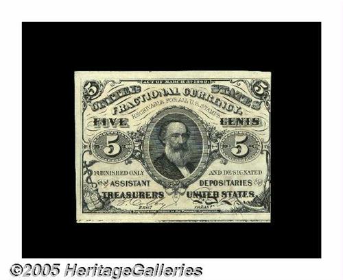 <B>Fr. 1236 5¢ Third Issue Choice New.</B></I> A nice red back Clark that we'd have classified as a Gem but for the shift of the face centering towards the right. Ex-Lyman Low's January 28, 1911 sale and housed in an envelope bearing lot number 331 as well as the price paid - $.88.