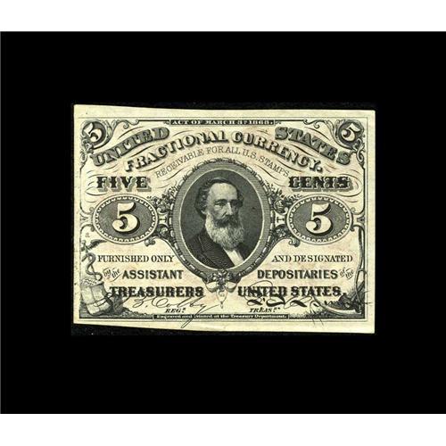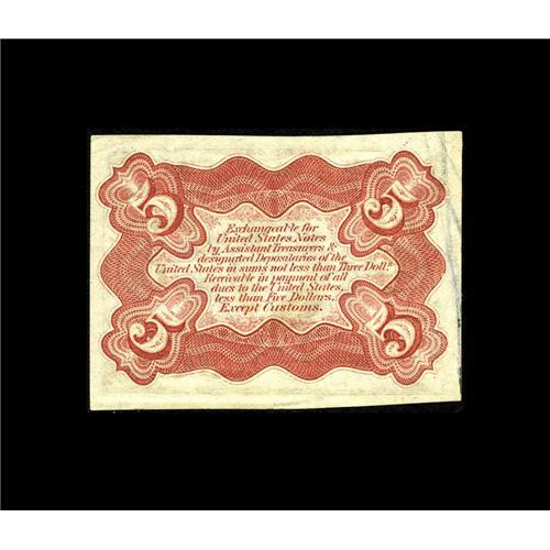 <B>Fr. 1237 5c Third Issue About New.</B></I> An uncommon Friedberg number with this example displaying a minute corner tip fold and handling above the bottom edge.