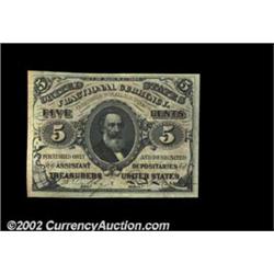 Fr. 1237 5c Third Issue Gem New. This Red Back Clark with the design letter "a" is the scarcest of the four Clark numbers. It's a beautiful piece, with all its original embossing, and it's totally defect-free save for some very minor press-bed smudging, as is almost always seen on this number. Important notice: We expect to be auctioning lots at the rate of 200-250 per hour. Sometimes eBay Premier live bid software cannot keep up with that pace, so we strongly recommend that you place a realistic proxy bid now as insurance to avoid disappointment. Also please note that all Heritage/CAA lots purchased through eBay Premier carry a 20% Buyer's Premium. Please make sure you read the Terms and Conditions.