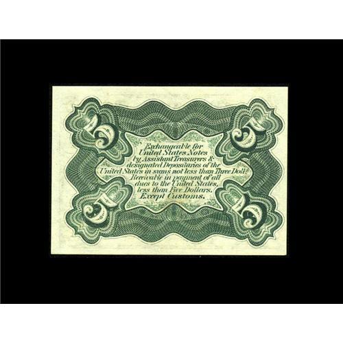<B>Fr. 1238 5c Third Issue Superb Gem New.</B></I> We are lucky enough to once again offer this note, previously selling in our 2003 Cincinnati sale, with a description of "Broad, even margins, deep original embossing, terrific print quality and perfect colors all come together on this essentially flawless Green Back Clark." The passage of the last three years has not detracted from this glorious example.