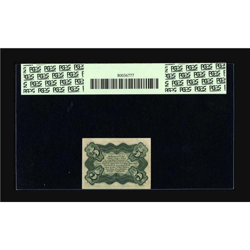 <B>Fr. 1239 5¢ Third Issue PCGS Choice New 63.</B></I> This is the scarcer of the two Green Back Clarkes. The note "faces up" like a Superb piece with ideal centering, perfect color, and huge margins. Some tiny flaw that is invisible through the holder must have held the grade down.<BR><I>From The Bill and Kathy Stella Currency Collection</B></I><BR><BR><b>Shipping:</b> Coin/Currency (<a target="_blank" href="http://www.heritageauctions.com/common/shipping.php">view shipping information</a>)