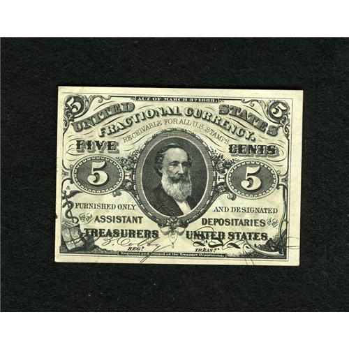 <B>Fr. 1239 5c Third Issue New.</B></I> This is the scarcer "a" on face green back Clark note. The lovely example has good margins and original embossing with a very light tip fold in the upper corner that comes across the frame line.<BR><BR><b>Shipping:</b> Coins & Currency (<a target="_blank" href="http://www.heritageauctions.com/common/shipping.php">view shipping information</a>)