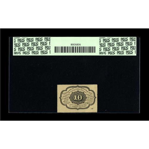 <B>Fr. 1240 10¢ First Issue PCGS Choice New 63PPQ.</B></I> Well perforated all the way around, but the perforations at the left touch the frameline. Save for that, this piece would likely have garnered the Gem grade.<BR><I>From The Bill and Kathy Stella Currency Collection</B></I><BR><BR><b>Shipping:</b> Coin/Currency (<a target="_blank" href="http://www.heritageauctions.com/common/shipping.php">view shipping information</a>)
