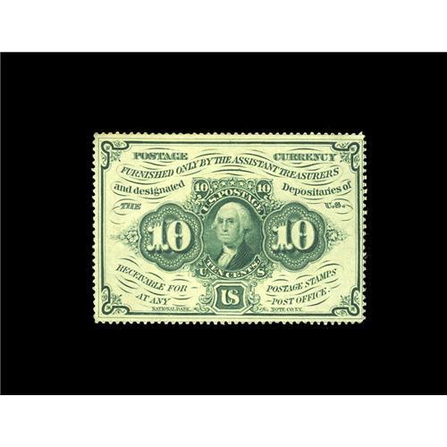 <B>Fr. 1240 10c First Issue Very Choice New.</B></I> An abundantly margined and colorful example of this scarcer perforated type which requires a slightly broader right margin to achieve the gem grade.