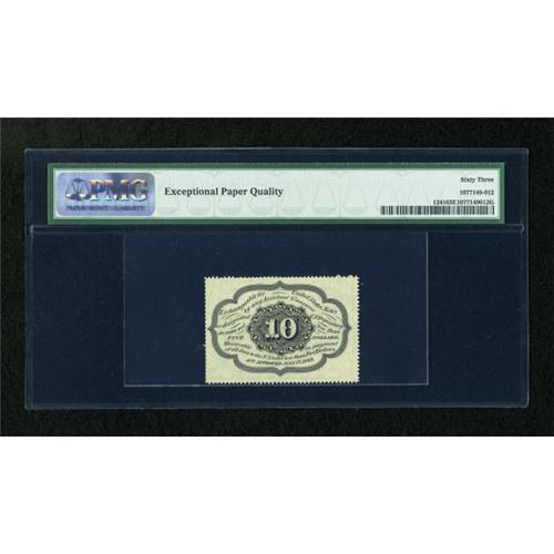 <B>Fr. 1241 10c First Issue PMG Choice Uncirculated 63 EPQ.</B></I> The right side is a bit weak as far as perforations go.<BR><BR><b>Shipping:</b> Coins & Currency (<a target="_blank" href="http://www.heritageauctions.com/common/shipping.php">view shipping information</a>)