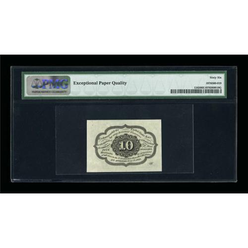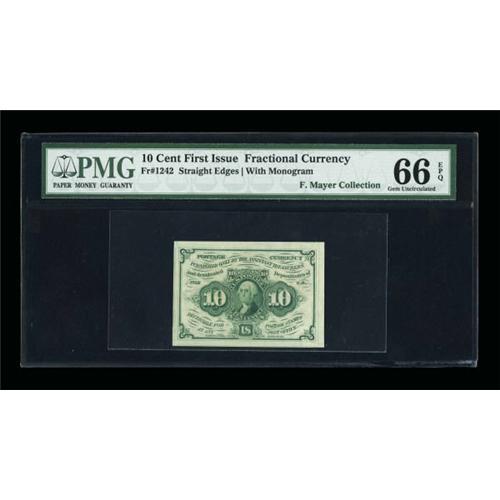 <B>Fr. 1242 10¢ First Issue PMG Gem Uncirculated 66 EPQ.</B></I> Clearly cut from a sheet for the purpose of obtaining huge margins. A spectacular piece. (750-up)<BR><I>From The Frederick Mayer Collection</B></I><BR><BR><b>Shipping:</b> Coins & Currency (<a target="_blank" href="http://www.heritageauctions.com/common/shipping.php">view shipping information</a>)
