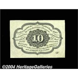 Fr. 1242 10c First Issue Gem New. A rather common number, but hard to find this nice. Bright, fresh, original and very well margined. <BR><BR><B>Important notice:</B> Heritage usually auctions material at the rate of 200-250 lots per hour. On some occasions eBay Live bid software or the Internet may not be able to keep up with the pace of the auction. We recommend placing a realistic absentee bid now as insurance to avoid disappointment. Occasionally the auctioneer may eliminate or reject an eBay Live bid, and the auctioneer may also reopen a lot after the close of the eBay live bidding (usually because we missed an audience bid), and may reject your bid even if it shows you as the winning bidder. By bidding via eBay Live, you agree that Heritage may award the lot to another bidder at its sole discretion under the circumstances described above or any other reasonable circumstances. Since eBay bids are not shown to us until we open the lot on the floor, we treat those bids just like floor bids. In most cases the floor responds before the eBay bid is presented to us, due to Internet lag time, so for consistency we have made it a policy that floor bids are always considered first over tie eBay live bids. Also please note that all Heritage lots purchased through eBay Live carry a 20% Buyer's Premium. Please make sure you read the Terms and Conditions before you bid. <BR><BR><B>IMPORTANT ANNOUNCEMENT ABOUT RESERVES:</B> Heritage now divulges all reserves on its web site 7 days before every auction. If you want to know whether the reserve on this lot has been met, and if not, what the reserve amount is, please visit this lot page on the HeritageCoin.com web site, or email: bid@HeritageGalleries.com