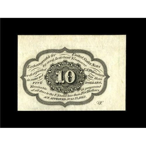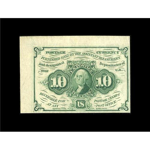 <B>Fr. 1242 10¢ First Issue Gem New.</B></I> The top and left margin are the wide sheet selvage, both measuring more than 1/4". The colors are terrific, the surfaces strictly original and the note is a Gem in every sense of the word.<BR><I>From The Jacob and Heather Dedman Collection</B></I><BR><BR><b>Shipping:</b> Coins & Currency (<a target="_blank" href="http://www.heritageauctions.com/common/shipping.php">view shipping information</a>)
