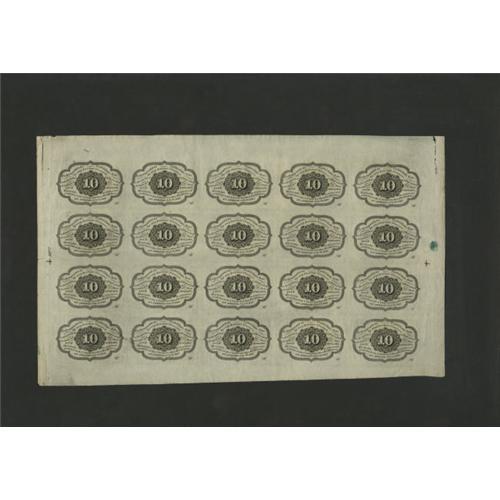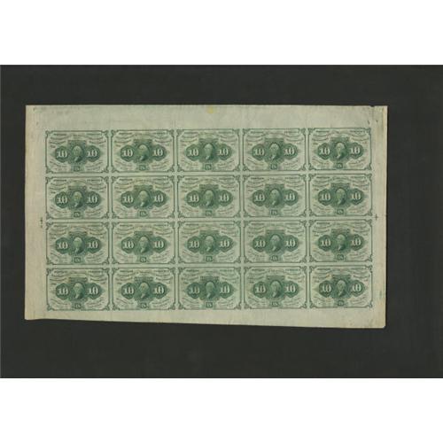 <B>Fr. 1242 10c First Issue Uncut Sheet of Twenty New.</B></I> Wide selvage is found on this sheet that is printed a little bit askew. The face plate is 6 and the back plate is 31. The lower left corner note has a fold.<BR><BR><b>Shipping:</b> Coin/Currency (<a target="_blank" href="http://www.heritageauctions.com/common/shipping.php">view shipping information</a>)
