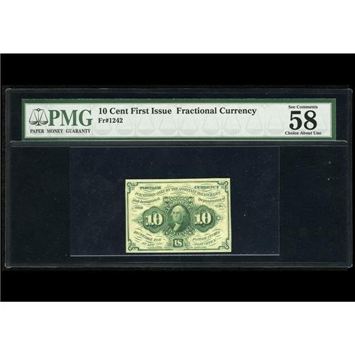 Fr. 1242 10c First Issue PMG Choice About Unc 58. Fr. 1242 10c First Issue PMG Choice About Unc 58.